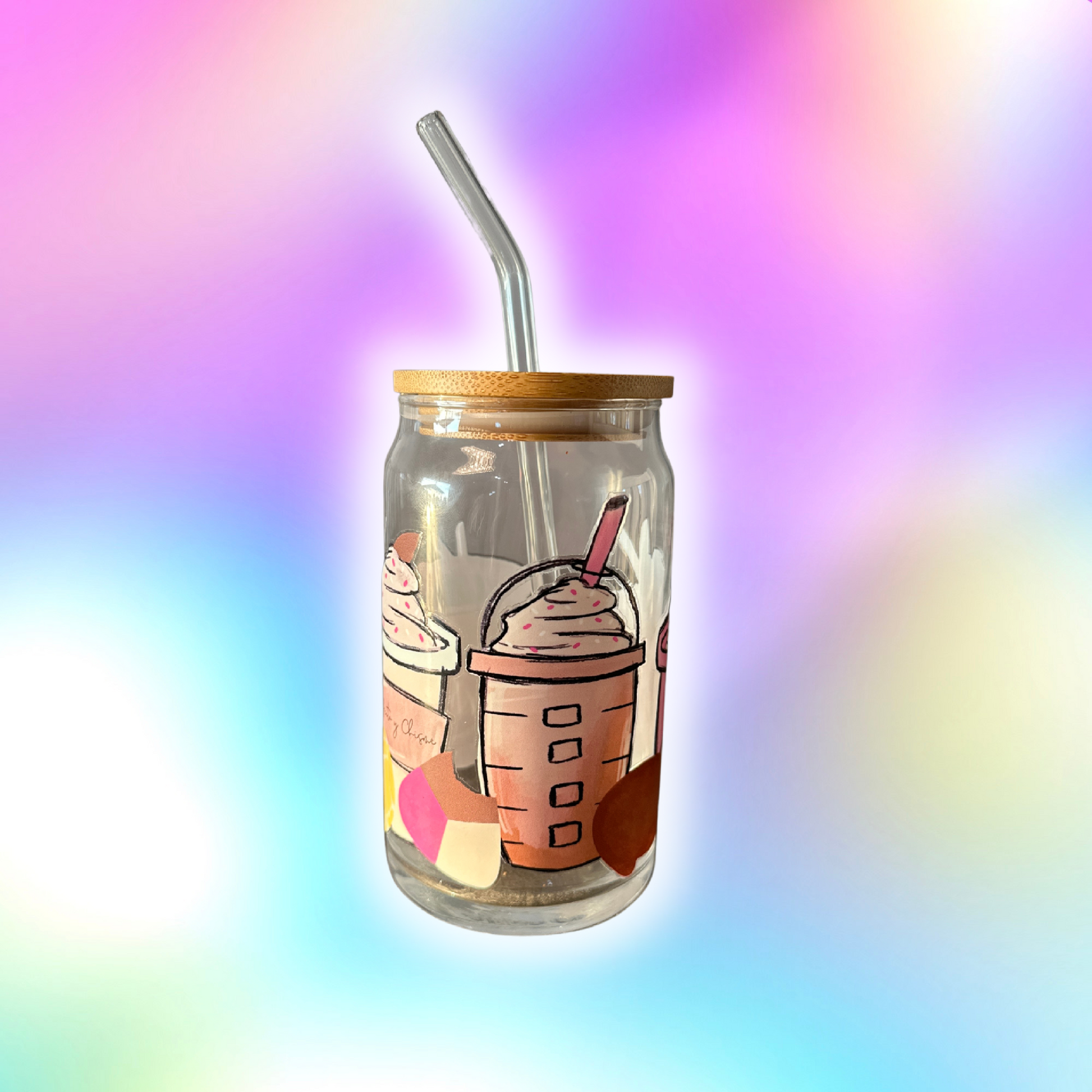 bamboo lid & glass straw included.
